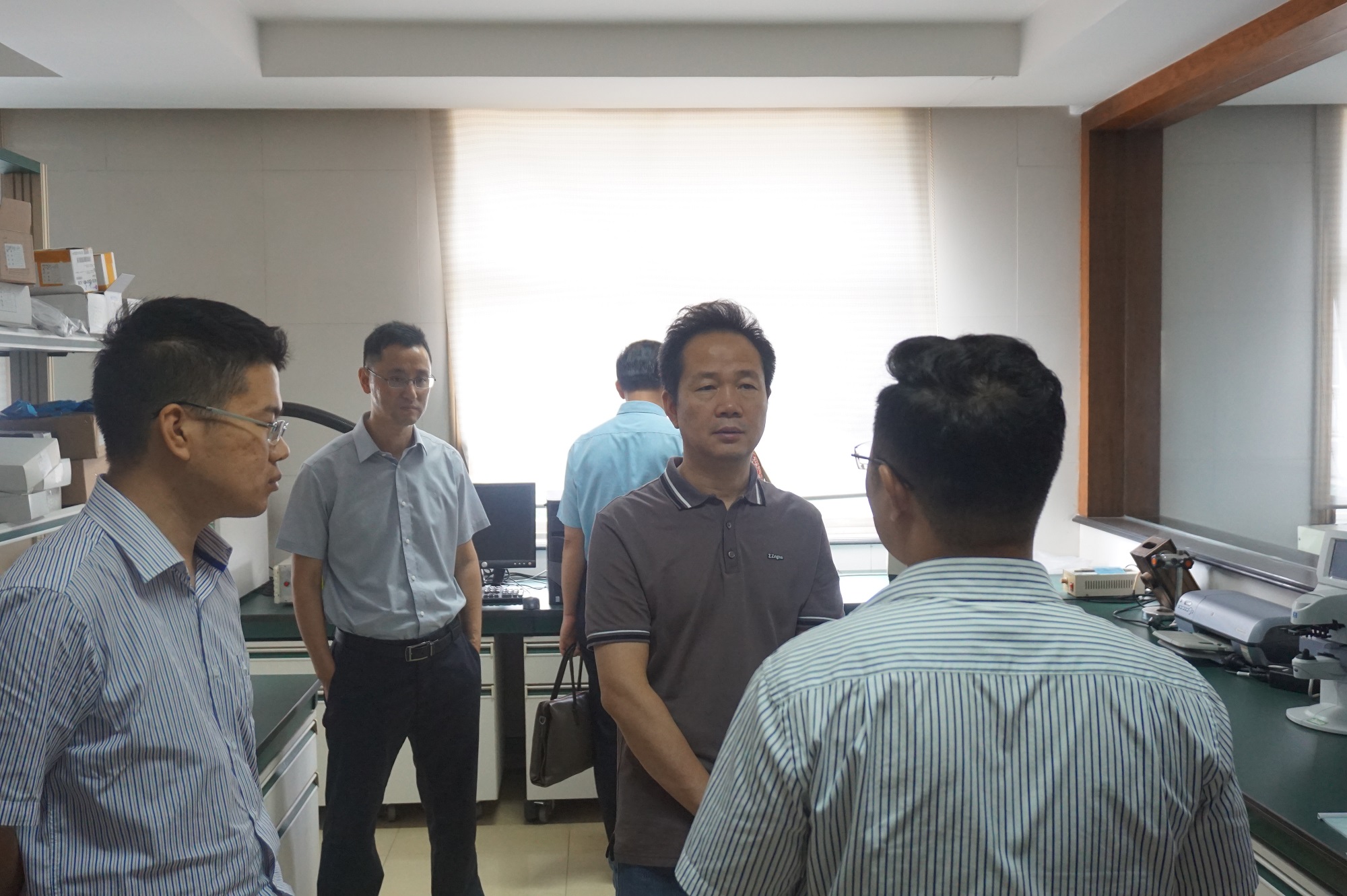 2019年7月25日,江苏省质监局黄运海副局长带队调研丹阳市检验检测中心(国家眼镜产品质量监督检验中心)