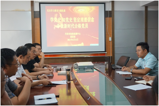 6月11日下午,丹阳市检验检测中心党总支部副书记蔡国景同志为中心第二党支部上了一堂“学党史 知党史 坚定理想信念 争做新时代合格党员”专题党课,会上蔡书记以2013年6月25日,习近平总书记在中共中央政治局第七次集体学习时强调:“历史是最好的教科书”为开场,围绕“为什么”、“学什么”、“怎么学”三个方面和大家共同交流了学习党史的必要性和重要性。