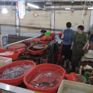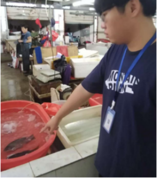 工作人员在农贸市场抽检