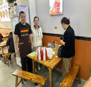 工作人员在餐饮经营单位抽检
